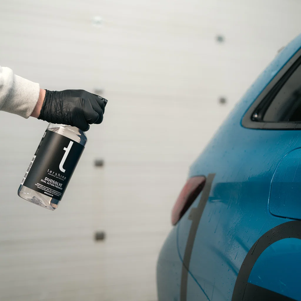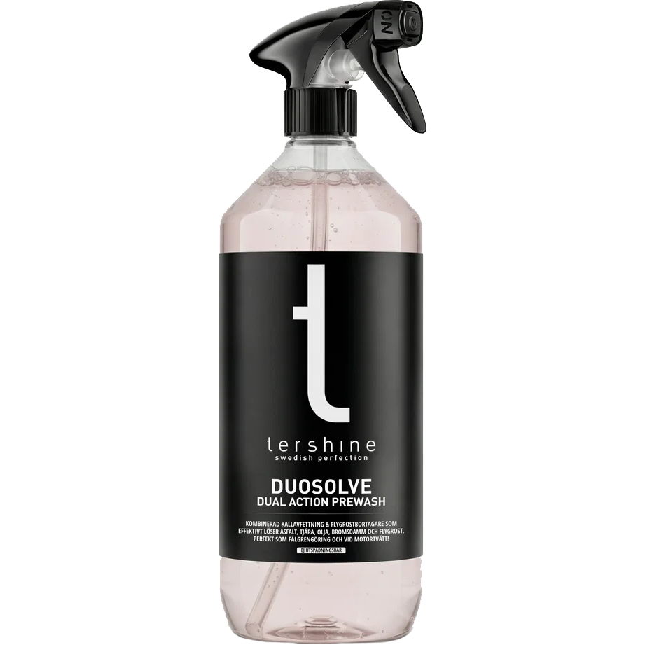 Tänk på att om ytan är kall så tar det längre tid för avfettningen att verka så rekommenderad tid är 5-15 minuter beroende på temperatur, men låt den aldrig torka in. Vi rekommenderar även att dra på ett lager med Tershine Extract efter några minuter för ännu bättre effekt.